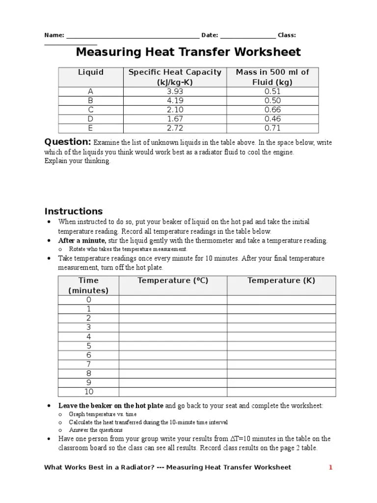 Heat Transfer Calculations Worksheet / Lesson Worksheet Specific Heat Capacity Nagwa :